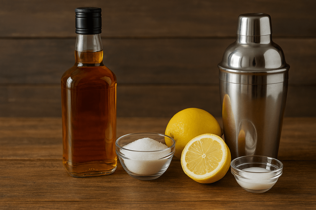 Ingredientes para preparar un Whisky Sour ahumado en casa